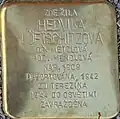 HEDVIKA LÜFTSCHITZOVÁ DŘ. METZLOVÁ ROZ. MENDLOVÁ NAR. 1909 DEPORTOVÁNA 1942 DO TEREZÍNA 1944 DO OSVĚTIMI ZAVRAŽDĚNA |