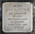 ANNA INGBEROVÁ ROZ. TAUSSIGOVÁ NAR. 1922 DEPORTOVÁNA 1943 DO TEREZÍNA ZAVRAŽDĚNA 1943 V OSVĚTIMI |