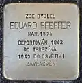 EDUARD PFEFFER NAR. 1875 DEPORTOVÁN 1942 DO TEREZÍNA 1943 DO OSVĚTIMI ZAVRAŽDĚN |
