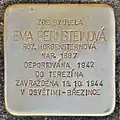 EMA BERNSTEINOVÁ ROZ. MORGENSTERNOVÁ NAR. 1887 DEPORTOVÁNA 1942 DO TEREZÍNA ZAVRAŽDĚNA 16.10.1944 V OSVĚTIMI-BŘEZINCE |