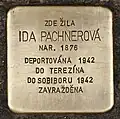 IDA PACHNEROVÁ NAR. 1876 DEPORTOVÁNA 1942 DO TEREZÍNA DO SOBIBORU 1942 ZAVRAŽDĚNA |