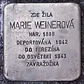 MARIE WEINEROVÁ NAR. 1888 DEPORTOVÁNA 1942 DO TEREZÍNA DO OSVĚTIMI 1943 ZAVRAŽDĚNA |