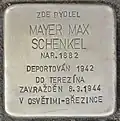 MAYER MAX SCHENKEL NAR. 1882 DEPORTOVÁN 1942 DO TEREZÍNA ZAVRAŽDĚN 8.3.1944 V OSVĚTIMI-BŘEZINCE |