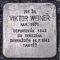 VIKTOR WEINER NAR. 1875 DEPORTOVÁN 1943 DO TEREZÍNA ZAVRAŽDĚN 16.7.1943 TAMTÉŽ |