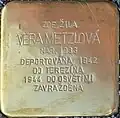 VĚRA METZLOVÁ NAR. 1933 DEPORTOVÁNA 1942 DO TEREZÍNA 1942 DO OSVĚTIMI ZAVRAŽDĚNA |