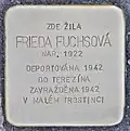 FRIEDA FUCHSOVÁ NAR. 1922 DEPORTOVÁNA 1942 DO TEREZÍNA ZAVRAŽDĚNA 1942 V MALÉM TROSTINCI |