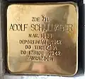 ADOLF SCHULHABER NAR. 1881 DEPORTOVÁN 1942 DO TEREZÍNA DO IZBICE 1942 ZAVRAŽDĚN |