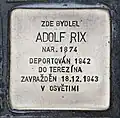 ADOLF RIX NAR. 1874 DEPORTOVÁN 1942 DO TEREZÍNA ZAVRAŽDĚN 18.12.1943 V OSVĚTIMI |