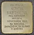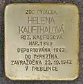HERMINA DEMNEROVÁ ROZ. DRÖLICHOVÁ NAR. 1889 DEPORTOVÁNA 1942 DO TEREZÍNA 1944 DO OSVĚTIMI ZAVRAŽDĚNA 10.4.1944 |