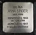 ANNA SINGER NAR. 1886 DEPORTOVÁNA 1942 DO TEREZÍNA ZAVRAŽDĚNA 1942 V MALÉM TROSTINCI |