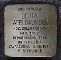 BERTA APFELBAUMOVÁ ROZ. ZOLLMANNOVÁ NAR. 1893 DEPORTOVÁNA 1942 DO TEREZÍNA ZAVRAŽDĚNA 5.10.1942 V TREBLINCE |