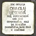 ILSE STILLEROVÁ NAR. 1921 DEPORTOVÁNA 1942 DO TEREZÍNA ZAVRAŽDĚNA 5.10.1942 V TREBLINCE |