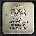 DR. DAVID RUDOLFER NAR. 1871 DEPORTOVÁN 1942 DO TEREZÍNA ZAVRAŽDĚN 1942 |