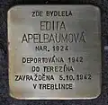 EDITA APFELBAUMOVÁ NAR. 1924 DEPORTOVÁNA 1942 DO TEREZÍNA ZAVRAŽDĚNA 5.10.1942 V TREBLINCE |