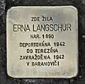 ERNA LANGSCHUR NAR. 1890 DEPORTOVÁNA 1942 DO TEREZÍNA ZAVRAŽDĚNA 1942 V BARANOVIČI |