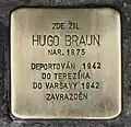 HUGO BRAUN NAR. 1875 DEPORTOVÁN 1942 DO TEREZÍNA DO VARŠAVY 1942 ZAVRAŽDĚN |
