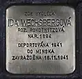 IDA WECHSBERGOVÁ ROZ. ROKOTNITZOVÁ NAR. 1894 DEPORTOVÁNA 1941 DO MINSKA ZAVRAŽDĚNA 16.11.1941 |