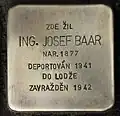 ING. JOSEF BAAR NAR. 1877 DEPORTOVÁN 1941 DO LODŽE ZAVRAŽDĚN 1942 |