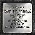 KAROLÍNA ROTHOVÁ ROZ. MARKUSOVÁ NAR. 1862 DEPORTOVÁNA 1942 DO TEREZÍNA ZAVRAŽDĚNA 20.10.1942 |