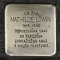 MATHILDE LÖWIN NAR. 1895 DEPORTOVÁNA 1942 DO TEREZÍNA ZAVRAŽDĚNA 1942 V MALÉM TROSTINCI |