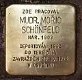 MUDR. MOŘIC SCHÖNFELD NAR. 1903 DEPORTOVÁN 1942 DO TEREZÍNA ZAVRAŽDĚN 23.10.1944 V OSVĚTIMI |