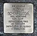 RŮŽENA SCHÖNFELDOVÁ ROZ. WEBEROVÁ NAR. 1877 DEPORTOVÁNA 1942 DO TEREZÍNA ZAVRAŽDĚNA 22.10.1942 V TREBLINCE |