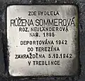 RŮŽENA SOMMEROVÁ ROZ. NEULÄNDEROVÁ NAR. 1895 DEPORTOVÁNA 1942 DO TEREZÍNA ZAVRAŽDĚNA 5.10.1942 V TREBLINCE |