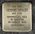 SIDONIE BRAUN NAR. 1880 DEPORTOVÁNA 1942 DO TEREZÍNA DO VARŠAVY 1942 ZAVRAŽDĚNA |