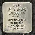 DR. SIGMUND LANGSCHUR NAR. 1884 DEPORTOVÁN 1942 DO TEREZÍNA ZAVRAŽDĚN 1942 V BARANOVIČI |