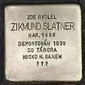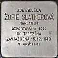 ZOFIE SLATNEROVÁ NAR. 1884 DEPORTOVÁNA 1942 DO TEREZÍNA ZAVRAŽDĚNA 15.12.1943 V OSVĚTIMI |