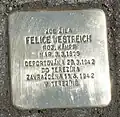 FELICE WESTREICH NAR. 3.3.1875 DEPORTOVÁNA 29.3.1942 DO TEREZÍNA ZAVRAŽDĚNA 11.4.1942 V TEREZÍNĚ |