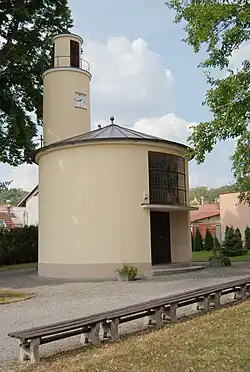 Funkcionalistická kaple svatého Cyrila a Metoděje byla v neobvyklém tvaru rotundy postavena v nových Kníničkách v roce 1939.[30][31] |