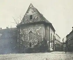 Novorenesanční kaple svatého Václava byla postavena v roce 1906 (uváděno též 1908[39]) podle projektu Tomáše Němečka. Na návsi osady Vinohrádky (části Žabovřesk) je dřevěná kaple téhož zasvěcení připomínána poprvé již roku 1826. Kvůli nedostatečné údržbě ale chátrala a roku 1903 se zhroutila.[40] | |