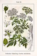 | Bolehlav plamatý (blakota, gyr, kozí petržel, mátožník, mrkvoun, myší kmín, sviňská veš, štěklec, všivák...) | nat, plod | Herba conii, Fructus conii[3] | smrtǃ, vhodné pouze k farmaceutickému zpracování |