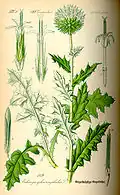 | Bělotrn kulatohlavý | plody | Fructus echinops, Semen echinops | kardiotonikum, parasympatikometikum, antisklerotikum. Při obrnách, vápenatění tepen, svalových poruchách, očních chorobách.[3] |