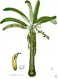| Banánovník rajský | mouka ze sušených plodů | při chorobách trávicího ústrojí[3] |