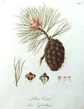 | Borovice lesní | pupeny, pryskyřice | Turio pini, Oleum terebinthinae retificantum, Resina colophonium[3] | aromaterapie, do mastí na bolesti pohybového ústrojí[3] |