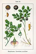 | Brusnice borůvka (borůvka černá, borůvčí, hafera,myrtovka) | plody, listy, čerstvé plody, z čerstvých listů[5] | Fructus myrtilli, Folia myrtilli, Vaccinium myrtillus, Myrtillus e folia[5] | podpůrná léčba při cukrovce, úprava stolice, stahující účinky, péče o kůži a ústní sliznici[5]