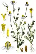 květy, heřmánková silice, čerstvá kvetoucí rostlina[ 3]