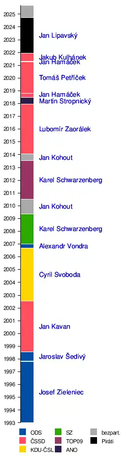 Karel Schwarzenberg | 13. července 2010 | 10. července 2013 | 1093[p. 3] | TOP 09 | Nečas | |