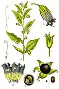 | Rulík zlomocný | atropin, L-hyoscyamin | 10–12 plodů u dospělých, 3–4 plody u dětí[1] | otrava většinou končí kómatem |
