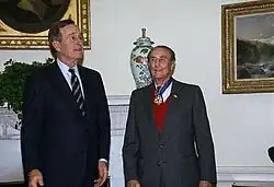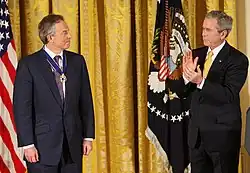↑MAYER, Catherine. A Presidential Medal for Tony Blair. Time. www.time.com, January 13, 2009. Dostupné v archivu pořízeném dne 2013-08-26.Je zde použita šablona {{Cite news}} označená jako k „pouze dočasnému použití“.