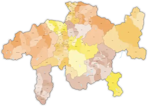 | Samnaun | 791 | 56,28 | 14 | Engiadina Bassa/Val Müstair | |