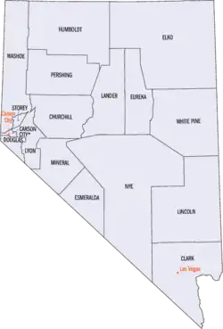 - ↑ a b Counties of Nevada [online]. Nevada-history.org [cit. 2017-10-06]. Dostupné v archivu pořízeném z originálu. (anglicky)