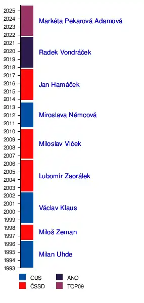 Milan Uhde | 1. ledna 1993[p. 1] | 6. června 1996 | 1252 | ODS | ODS, KDS, ODA, KDU-ČSL | |