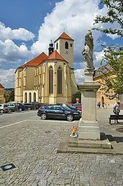 - Kostel sv. Jakuba Staršího na dolním konci náměstí – trojlodní gotická stavba s věží byla založena ve 2. polovině 14. století, dostavěna kolem 1500 s plochým stropem a zaklenuta 1679. Ze 14. století pocházejí obvodové zdi a sloupy, z 15. století sochařská výzdoba, vesměs vysoké kvality. V kostele je mramorový epitaf Václava Morkovského ze Zástřízl (+1600) a jeho manželky. Ke kostelu byla roku 1670 přistavěna Loretánská kaple.