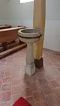 Křtitelnice z roku 1641 nacházející se v kostele.[2] Objekt byl v seznamu kulturních památek.[12]