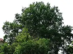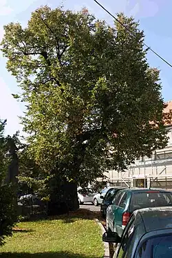 Kmen je měřen pod rozvětvením, ve výšce 1 m. V 1,5 m se dělí na tři větve, drobnější větévky až v 6 m, velmi pěkný, hustě olistěný. Na zahradě domu čp. 240, v ul. Národních hrdinů | ||