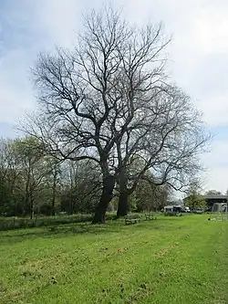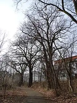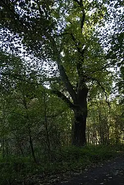 Dva památné stromy, na jižní části hráze Počernického rybníka | |