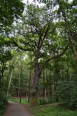 Druhý nejstarší dub v lesním komplexu Čimického háje, roste za plotem západně od hájovny. | |